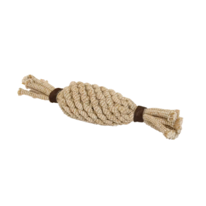 Zabawka linowa w kształcie ananasa. Wykonana z mocnej, plecionej bawełnianej liny, która posiada certyfikat GOTS. Dodatkowo wewnątrz wyposażona w plastikową butelkę.